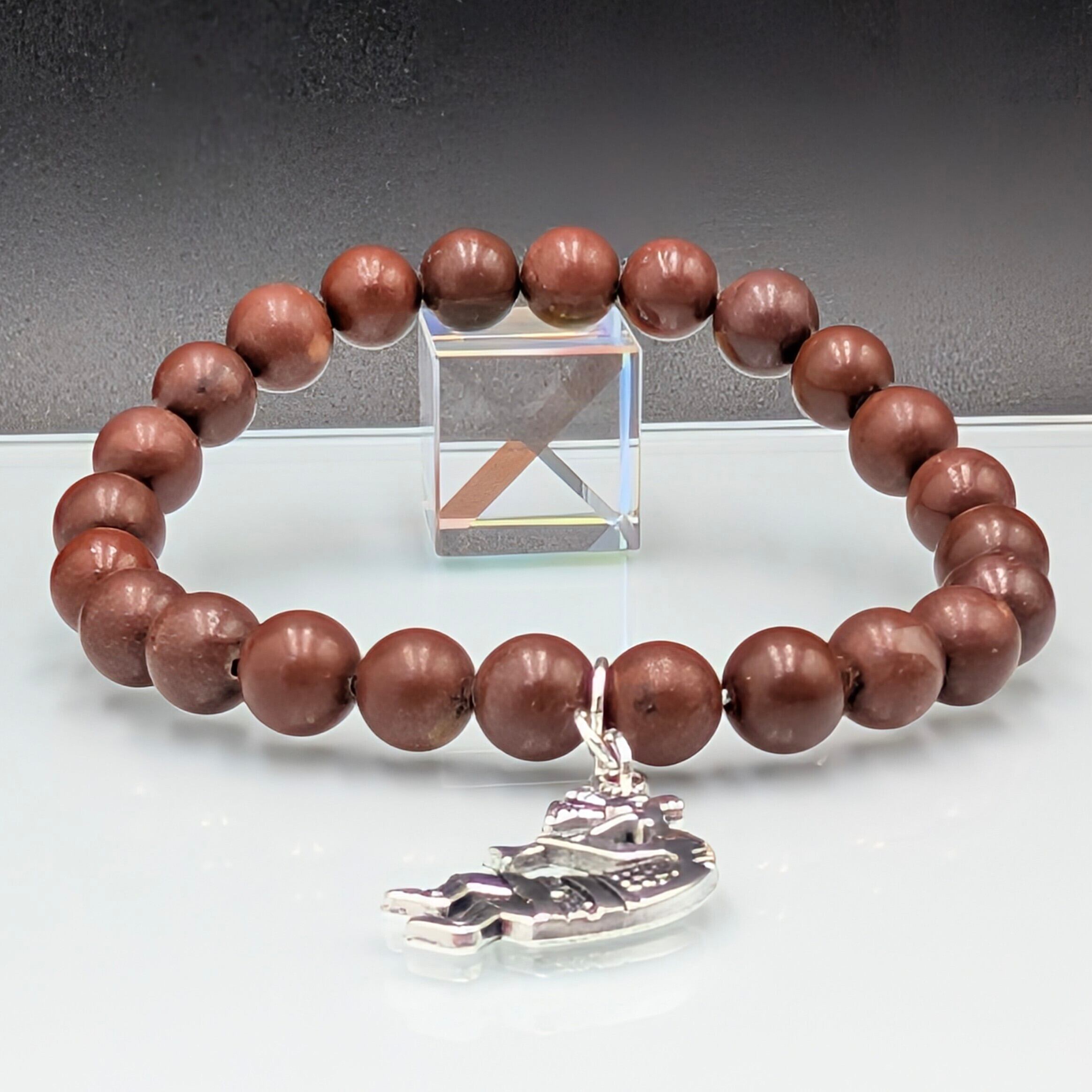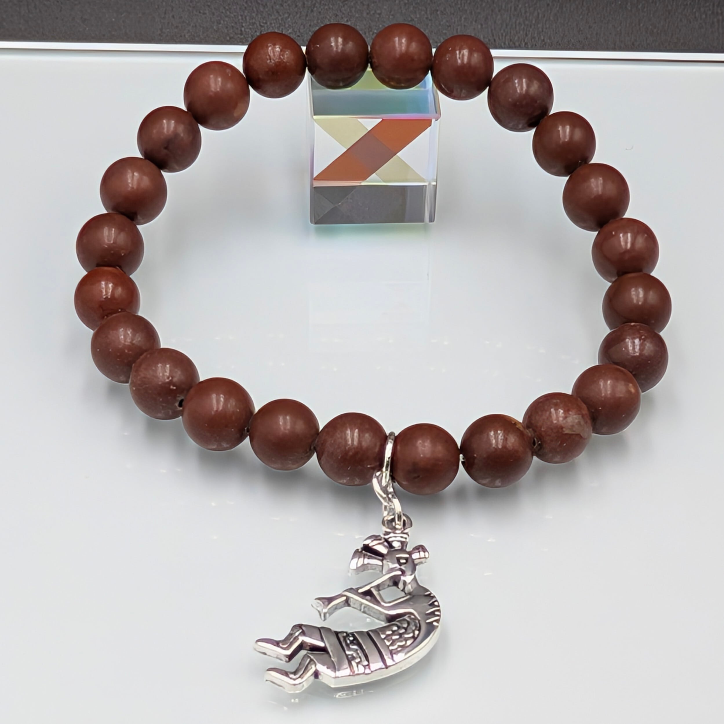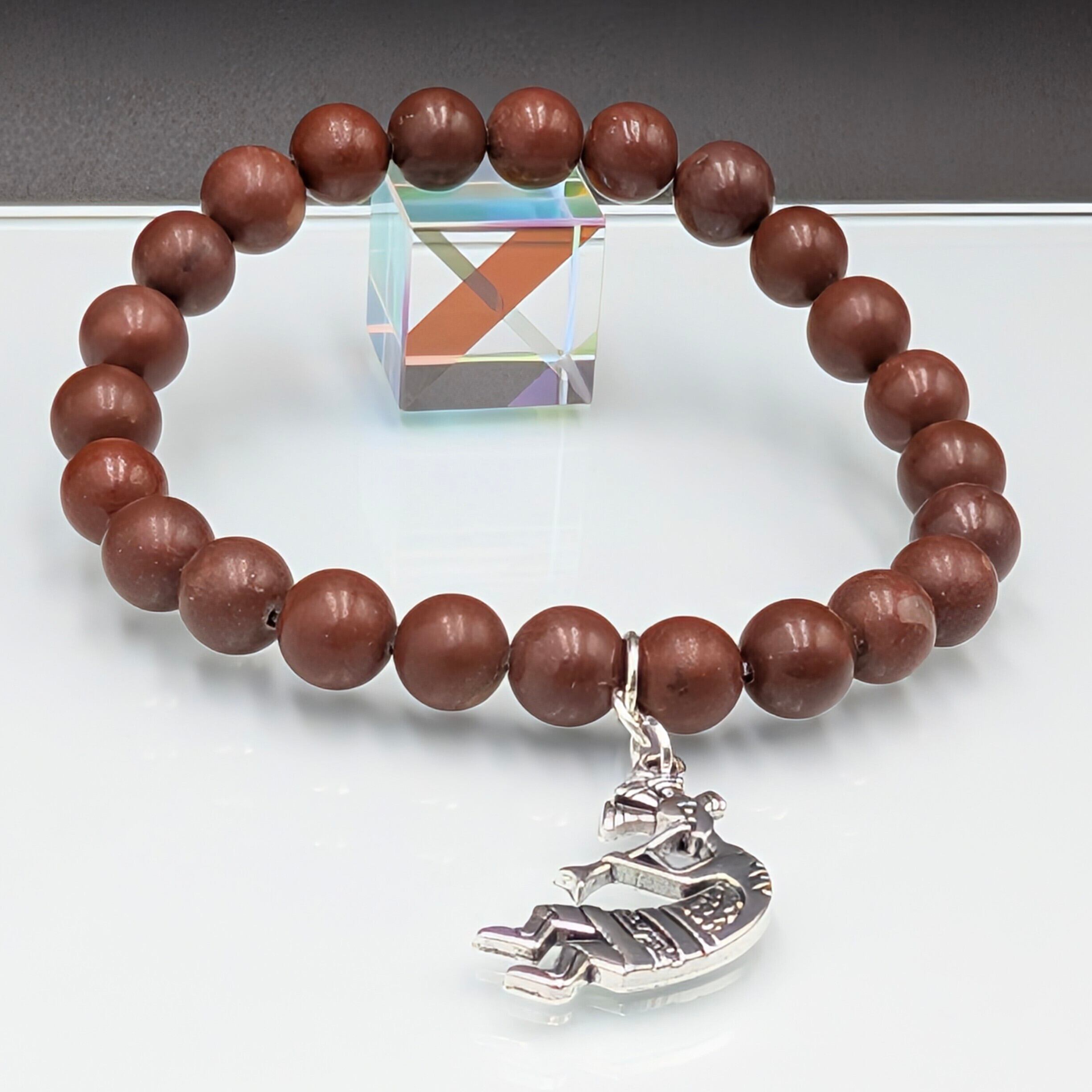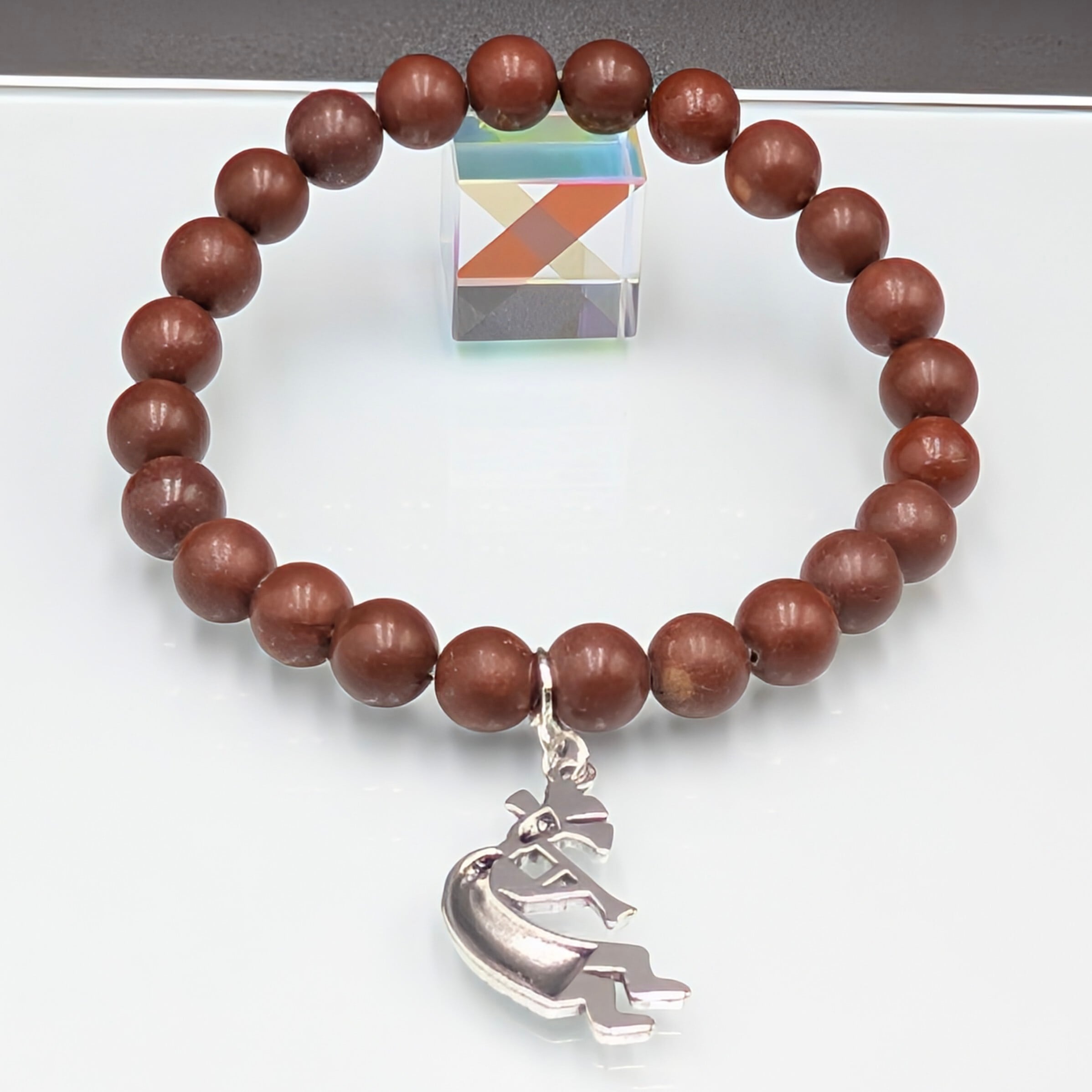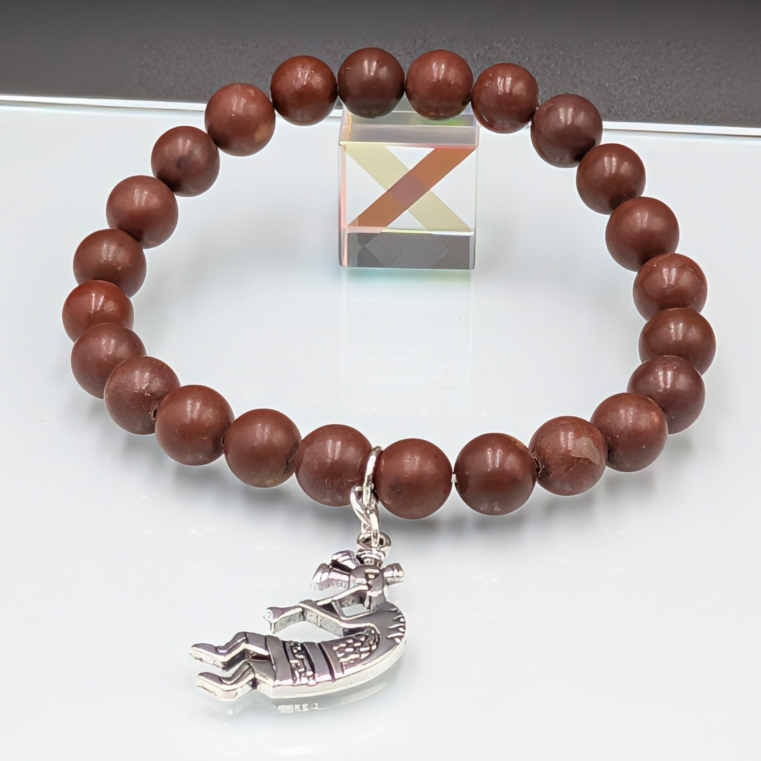 その赤い大地のエネルギーを象徴する「セドナストーン」に、ネイティブアメリカンの伝承に登場する精霊「ココペリ」を組み合わせた、お守りブレスレットです。