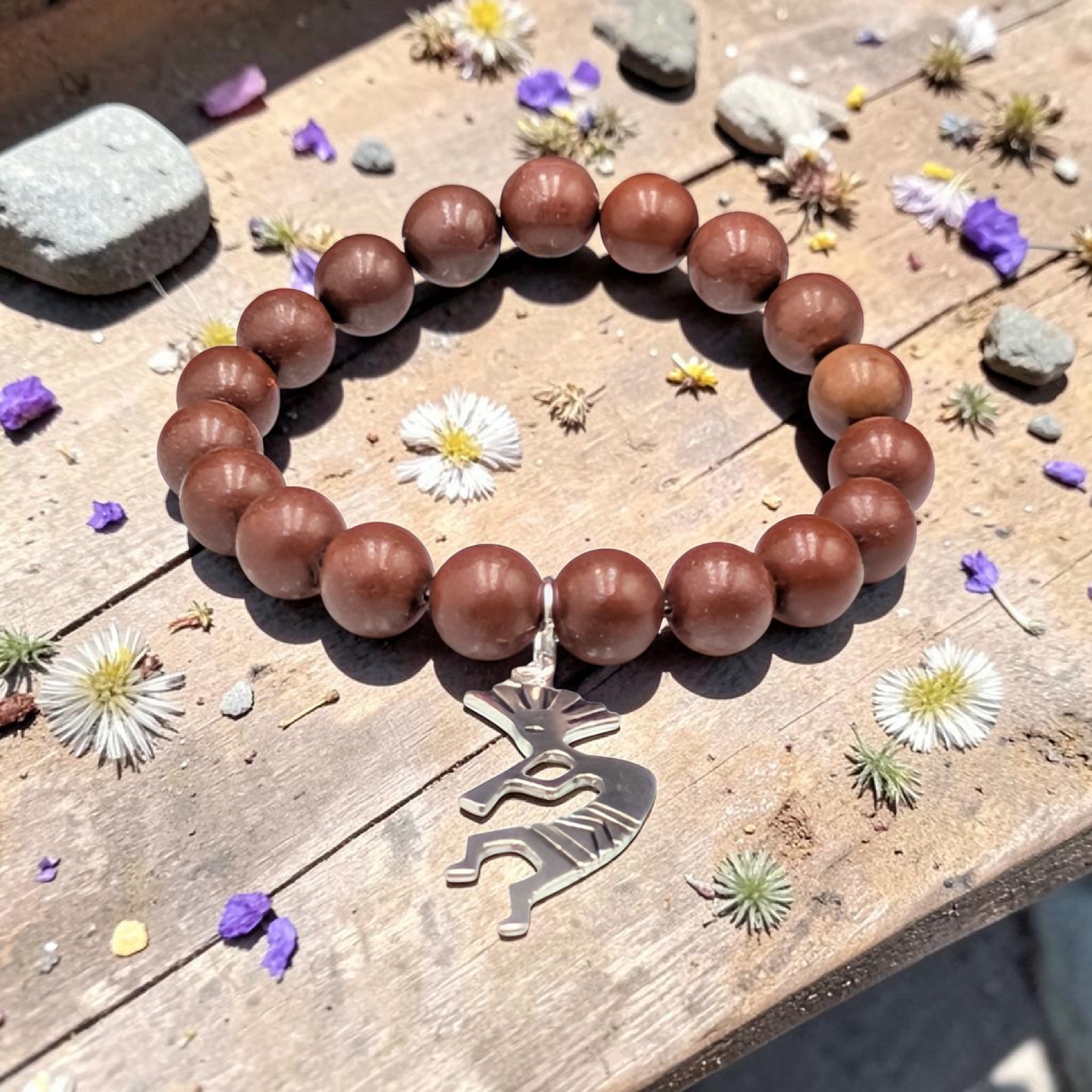 その強力な磁場エネルギー(ボルテックス)が凝縮された「セドナストーン」に、豊穣の神「ココペリ」を組み合わせた、唯一無二の守護ブレスレットです。