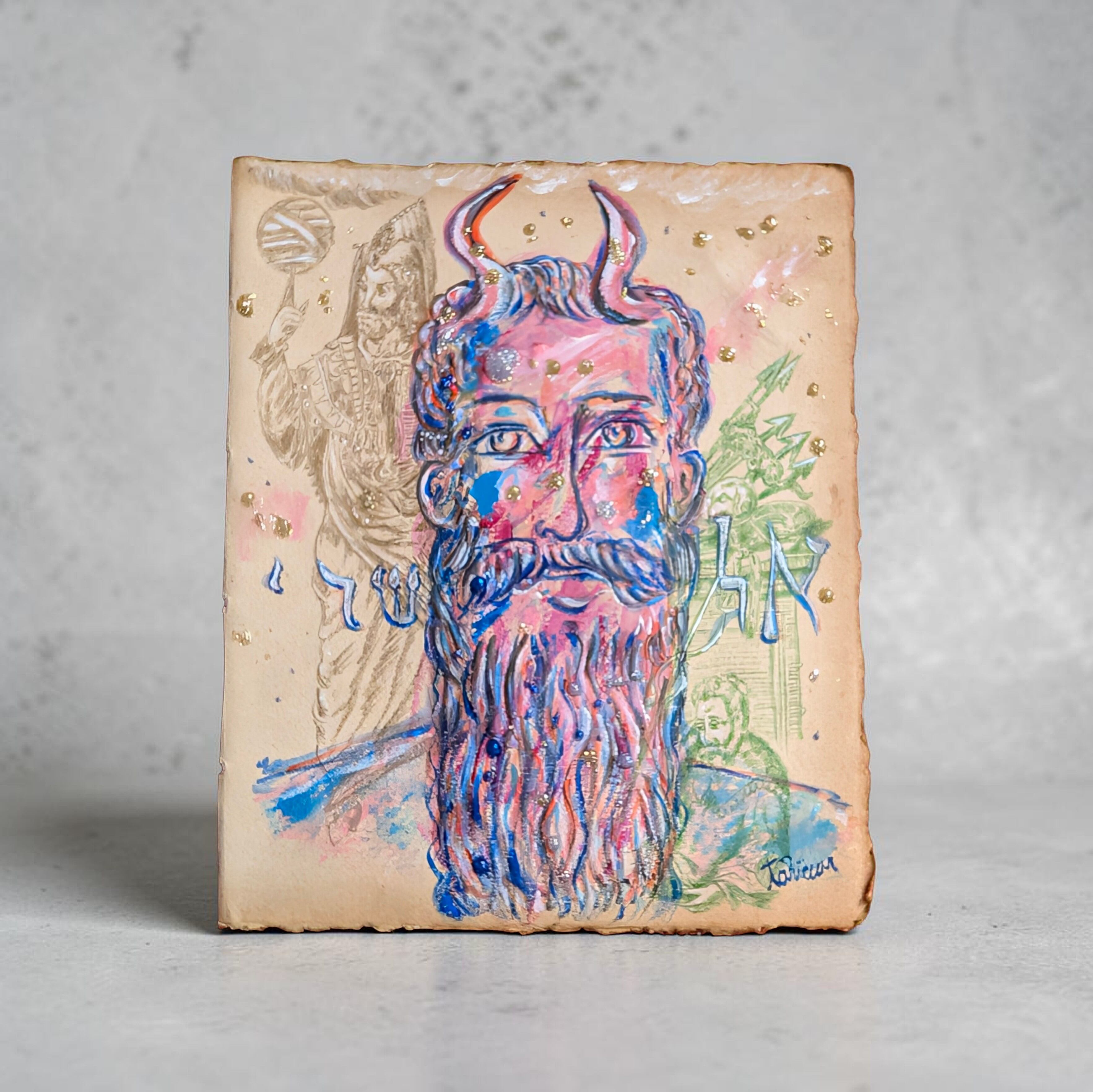 ・技法: 魔法書の古い麻紙にリキテックス・ミクストメディアで描写