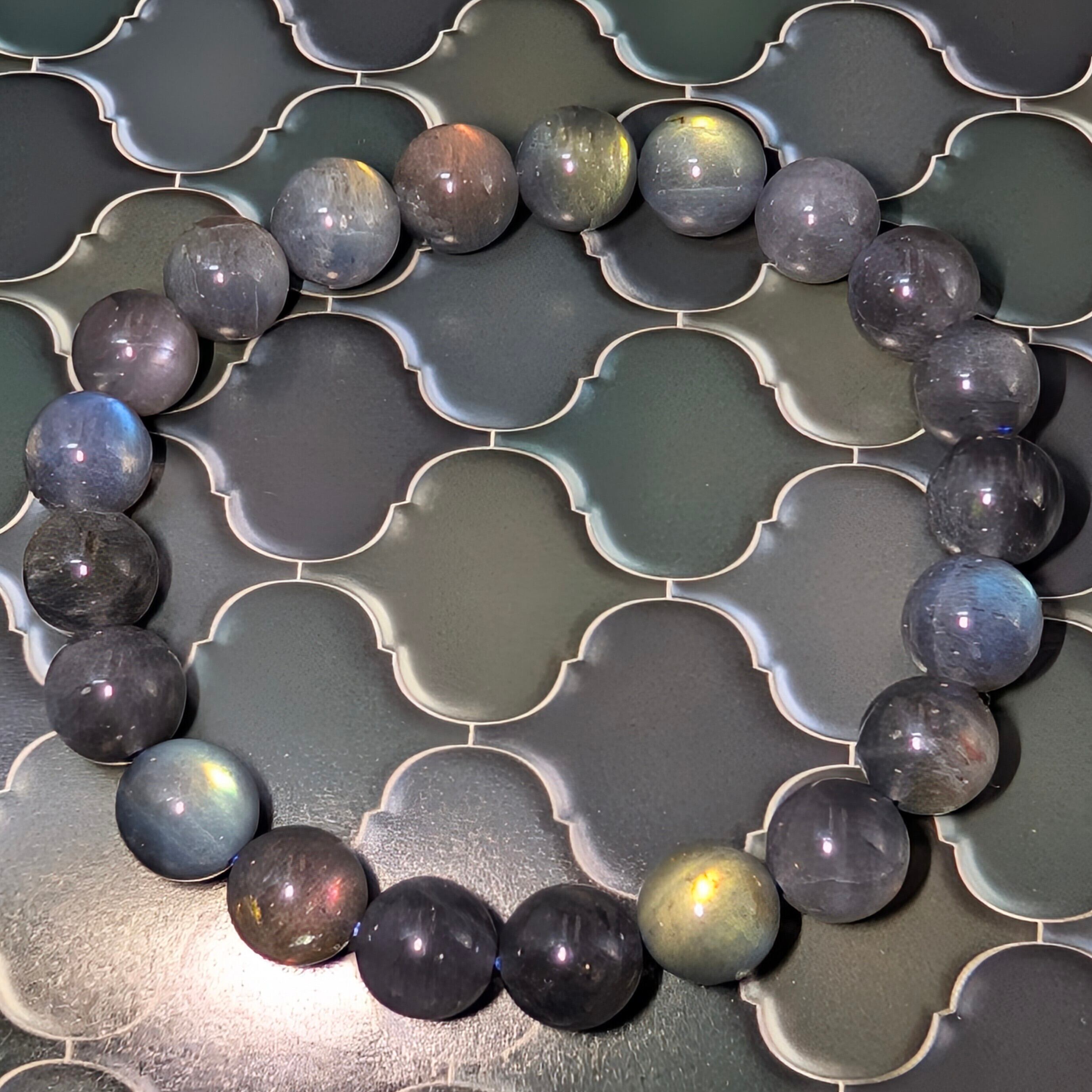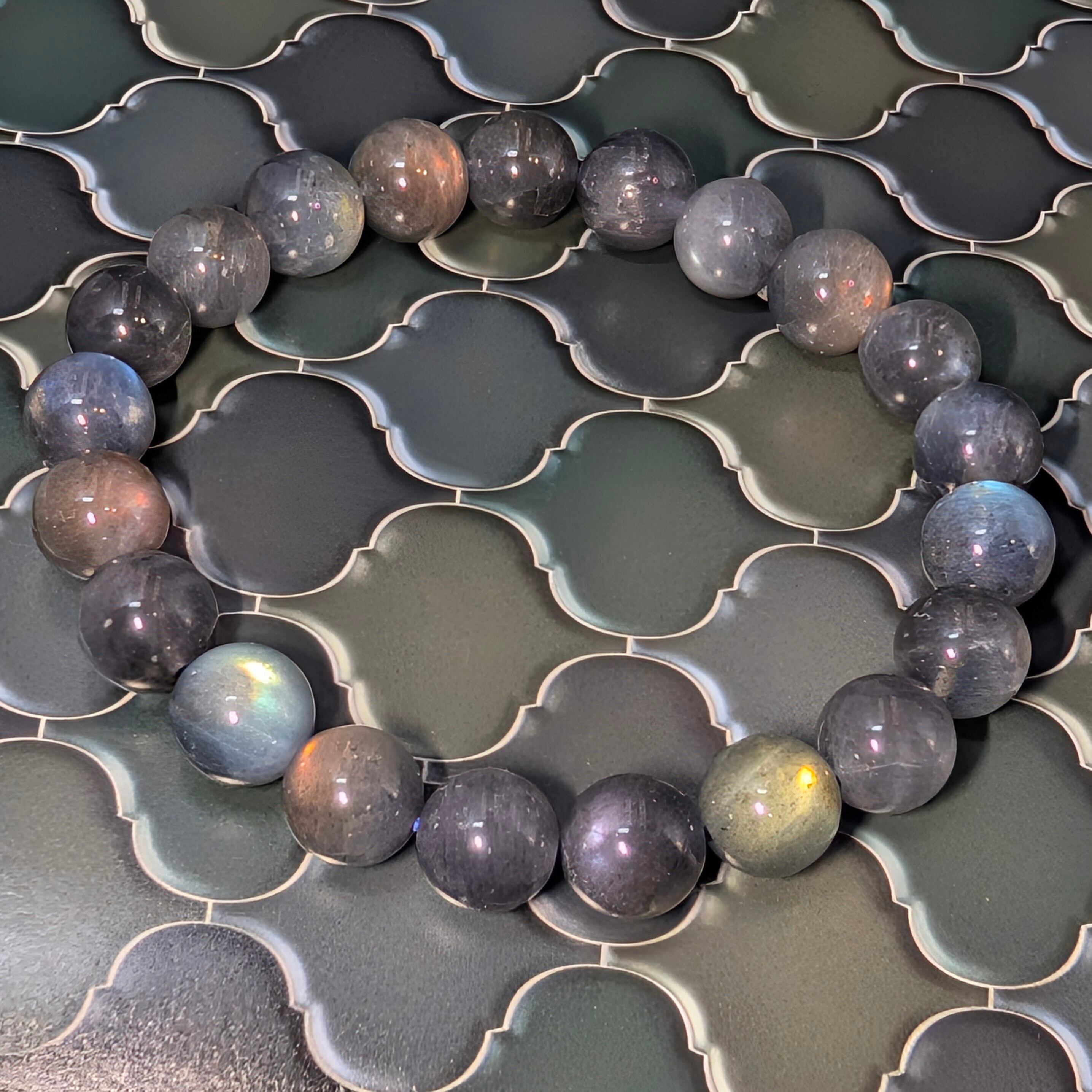 ムーンストーンやサンストーン、スペクトロライト、モルダバイトなどとも相性が良く、内なる変容と覚醒を力強く後押しする神秘的なブレスレットです。