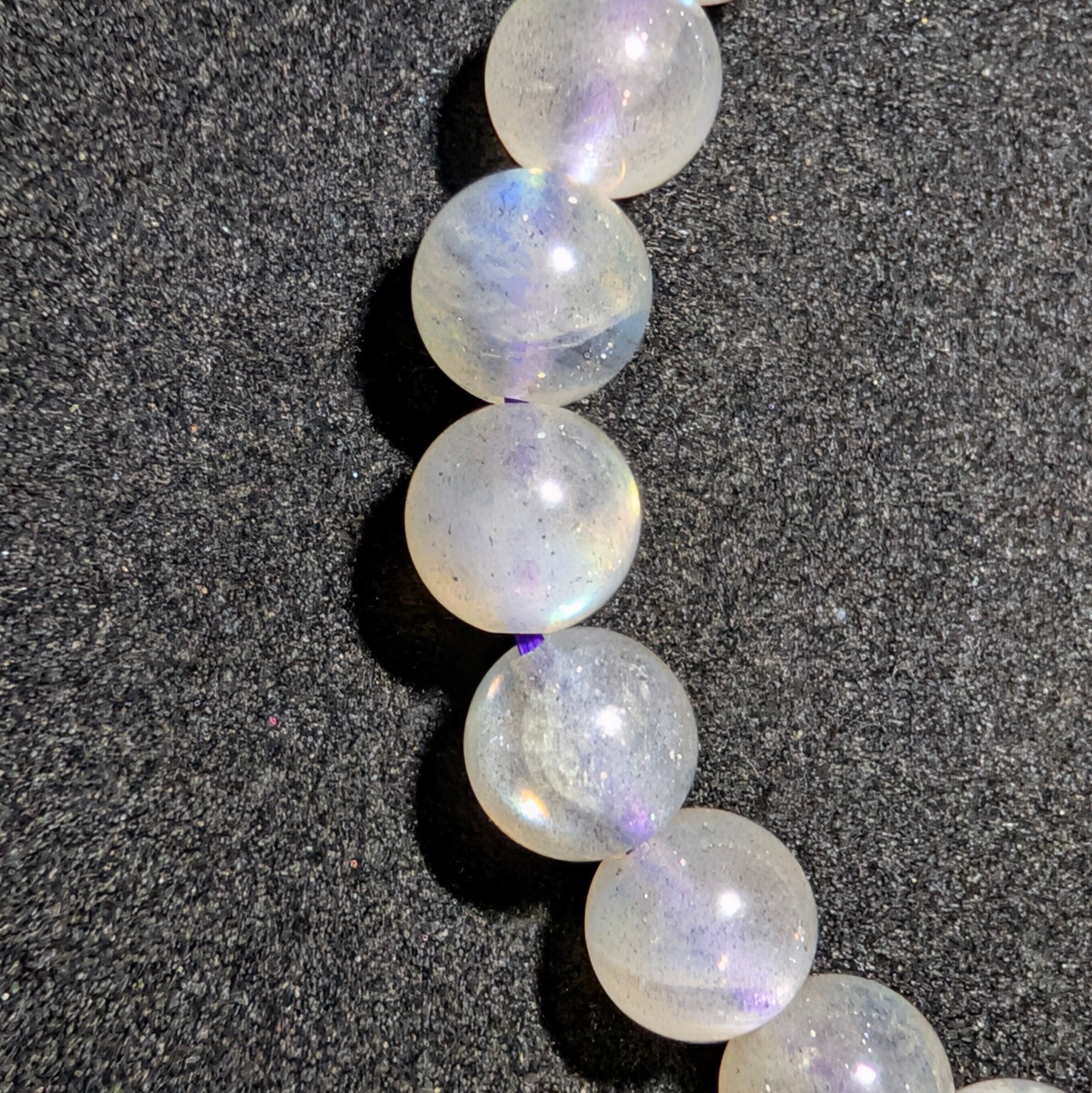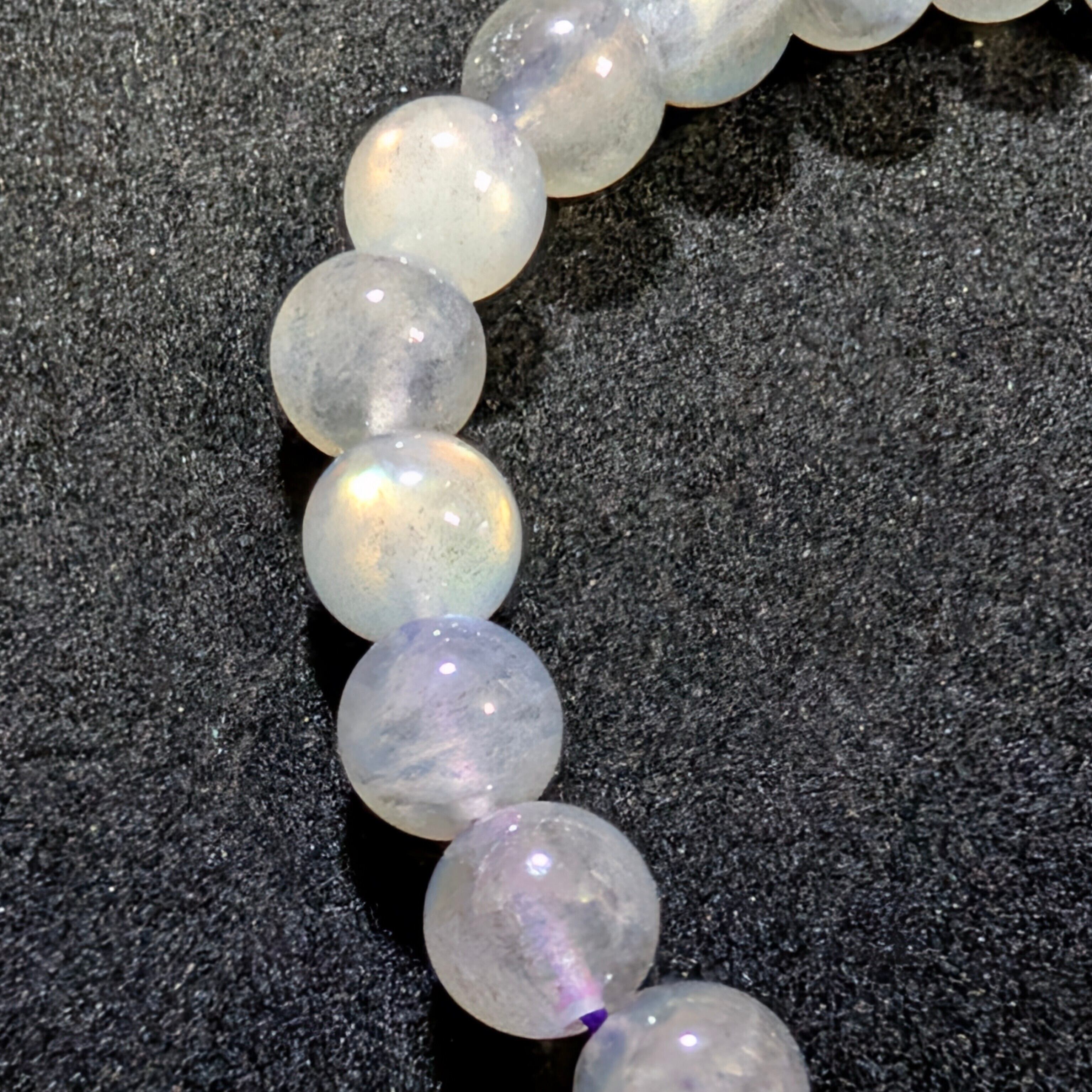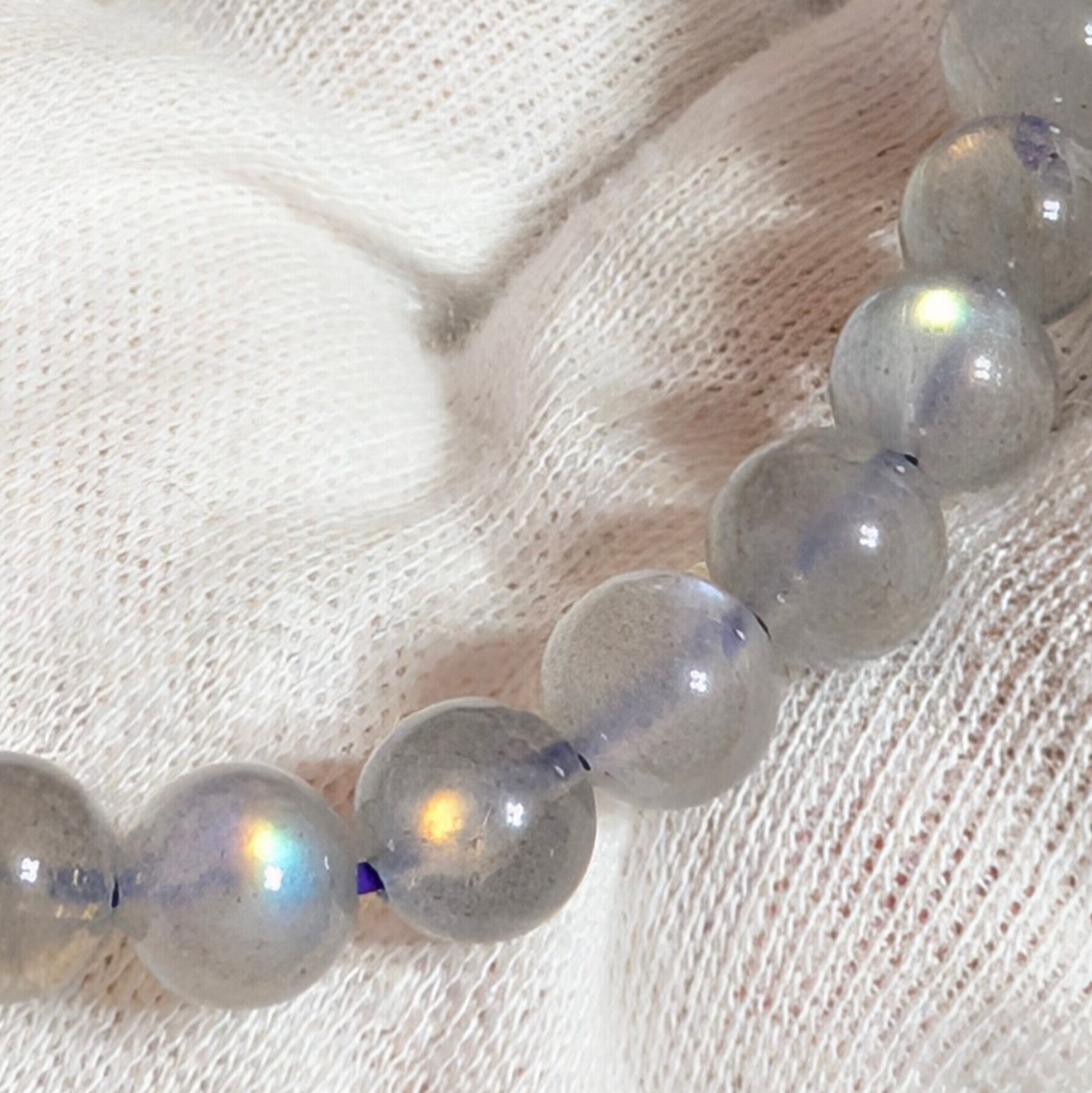 全珠に美しいラブラドレッセンスを確認できる極めて魅力的な個体を厳選。一般的なブルーシラーとは一線を画す、希少なピンクシラーを含む柔らかく神秘的な光彩が、手元に上品で幻想的な存在感をもたらします。