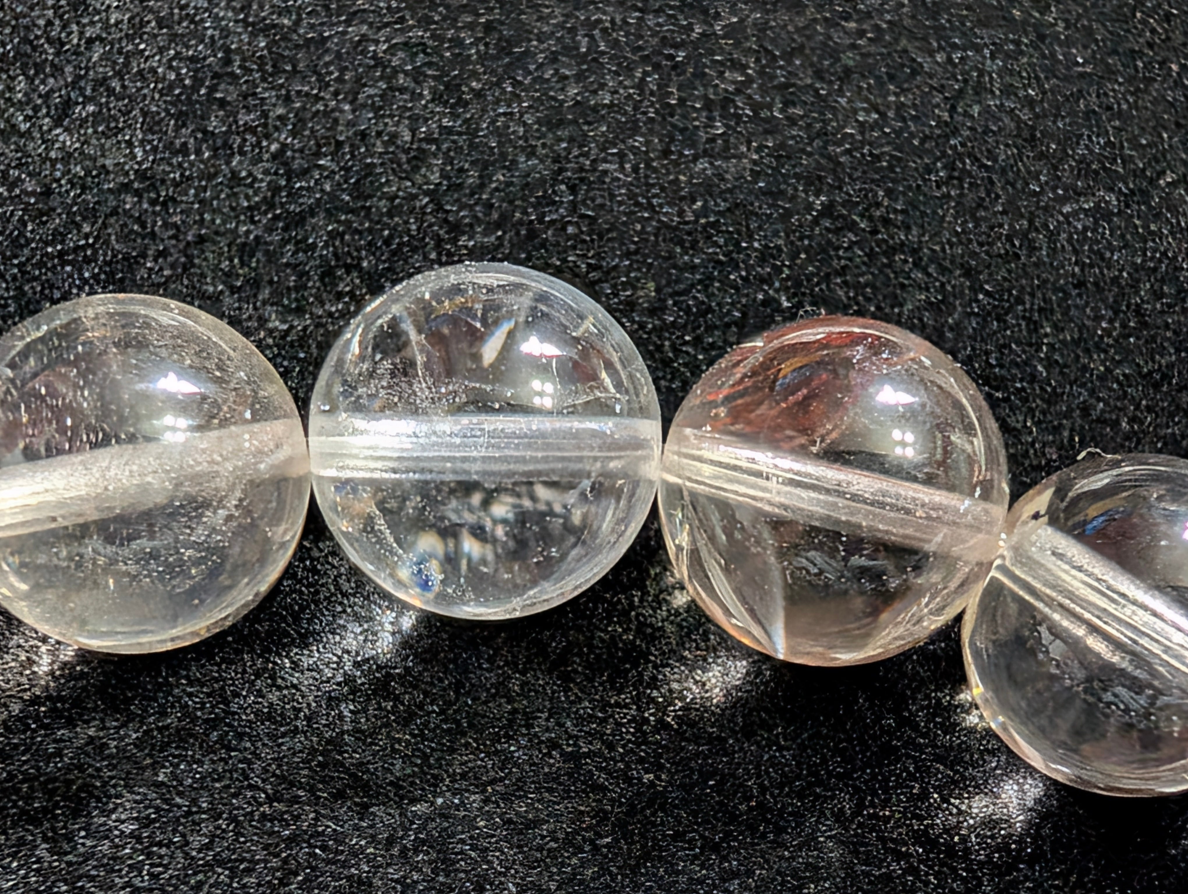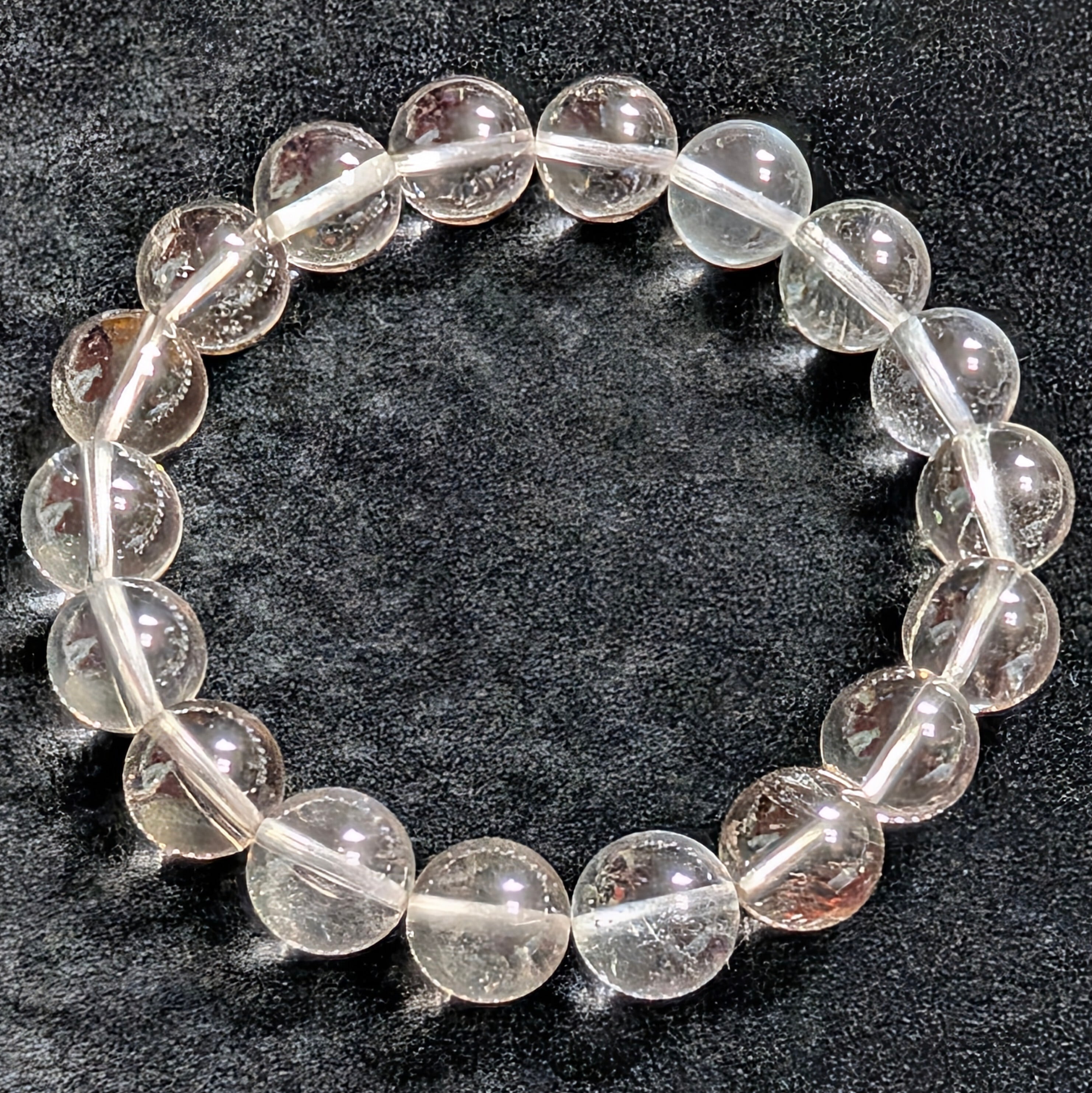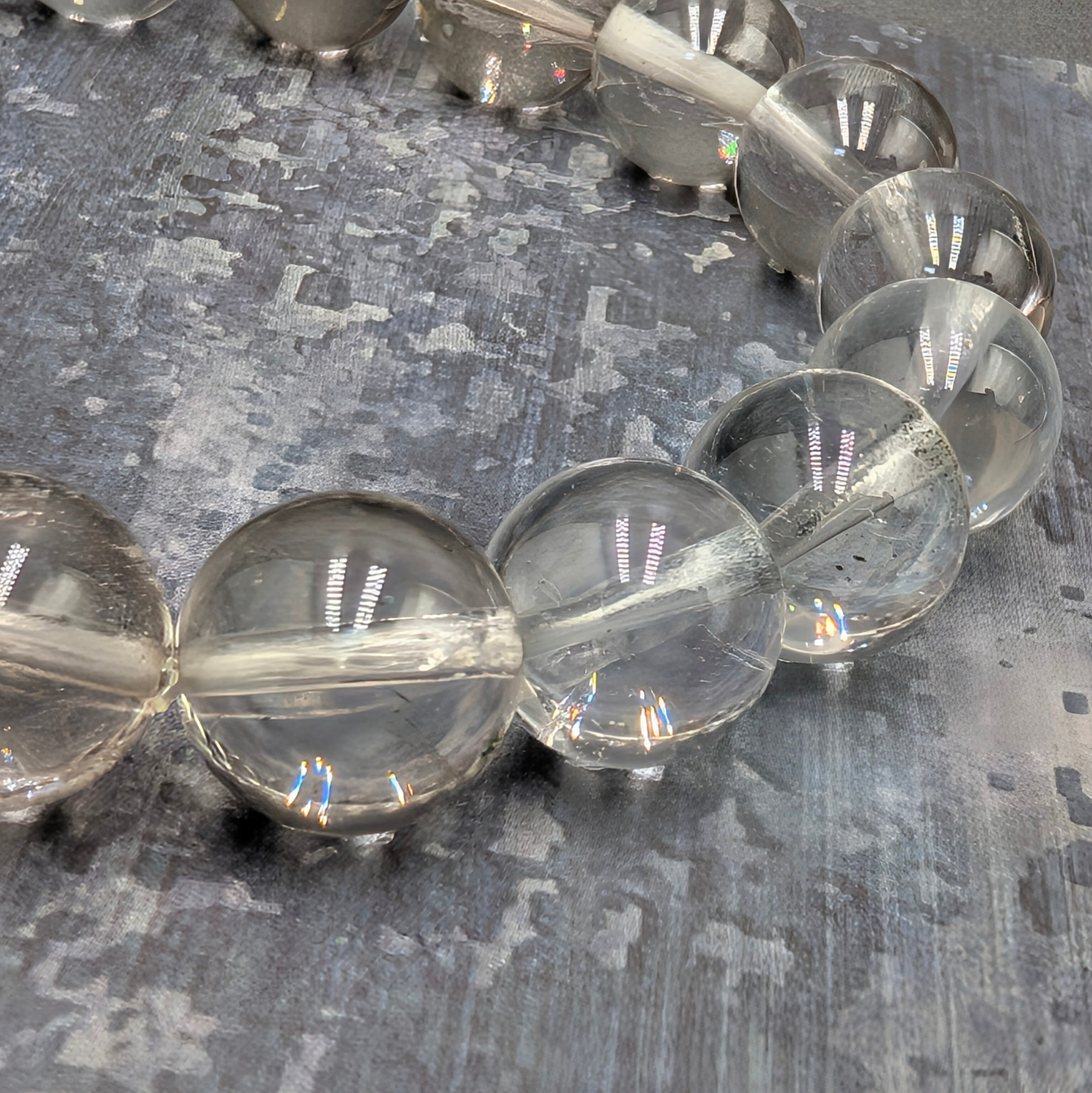 水晶の透明度は非常に高く、中には稀にガーデン状の内包物を含む珠もあり、一粒ごとに異なる神秘的な景色を楽しめるのが最大の魅力です。過度な加工をせず、自然の質感を大切に仕上げているため、石本来の力強い風合いを感じていただけます。自然が生み出した完璧な幾何学形状をお楽しみください。