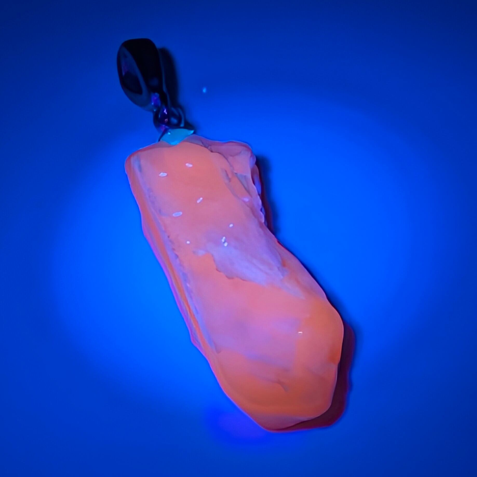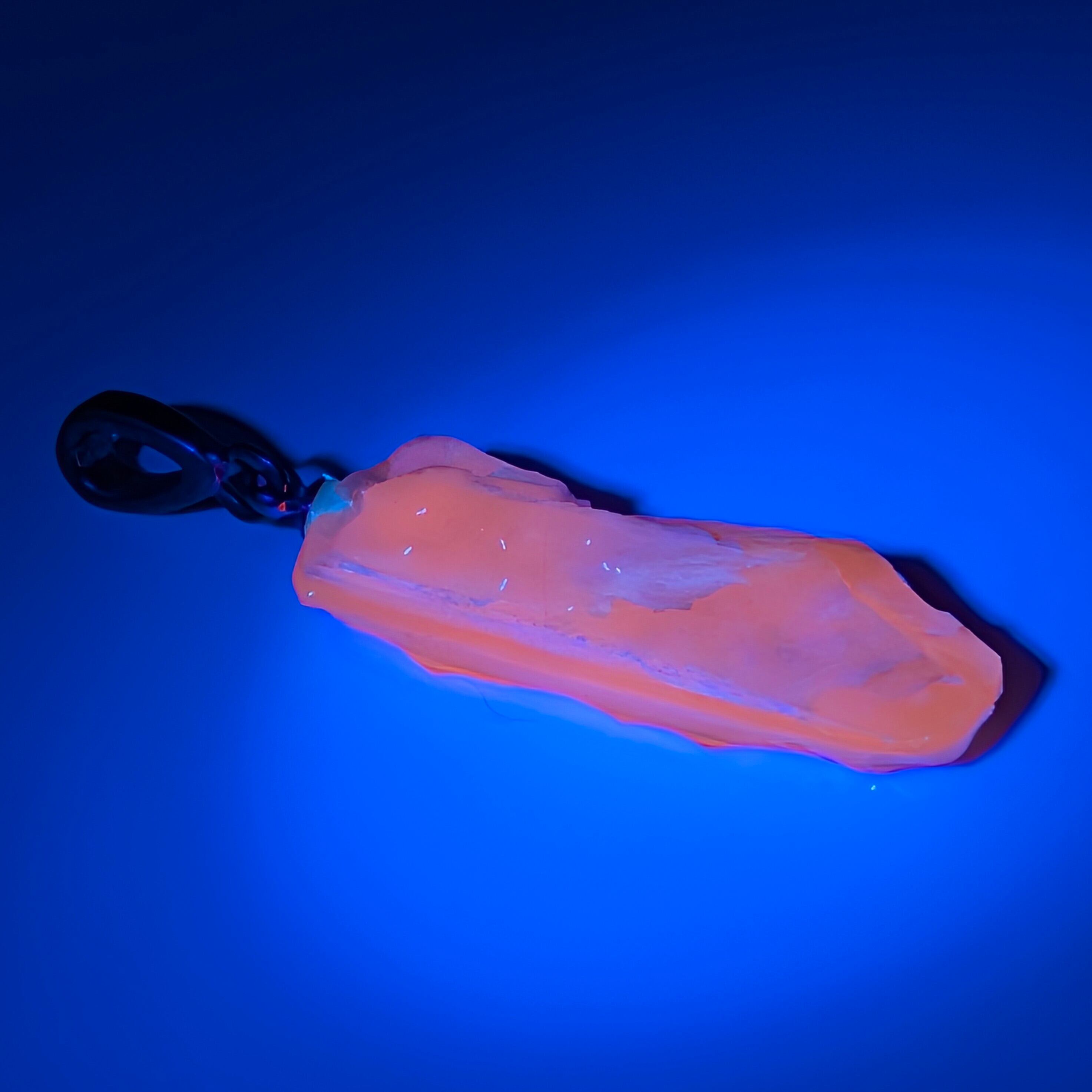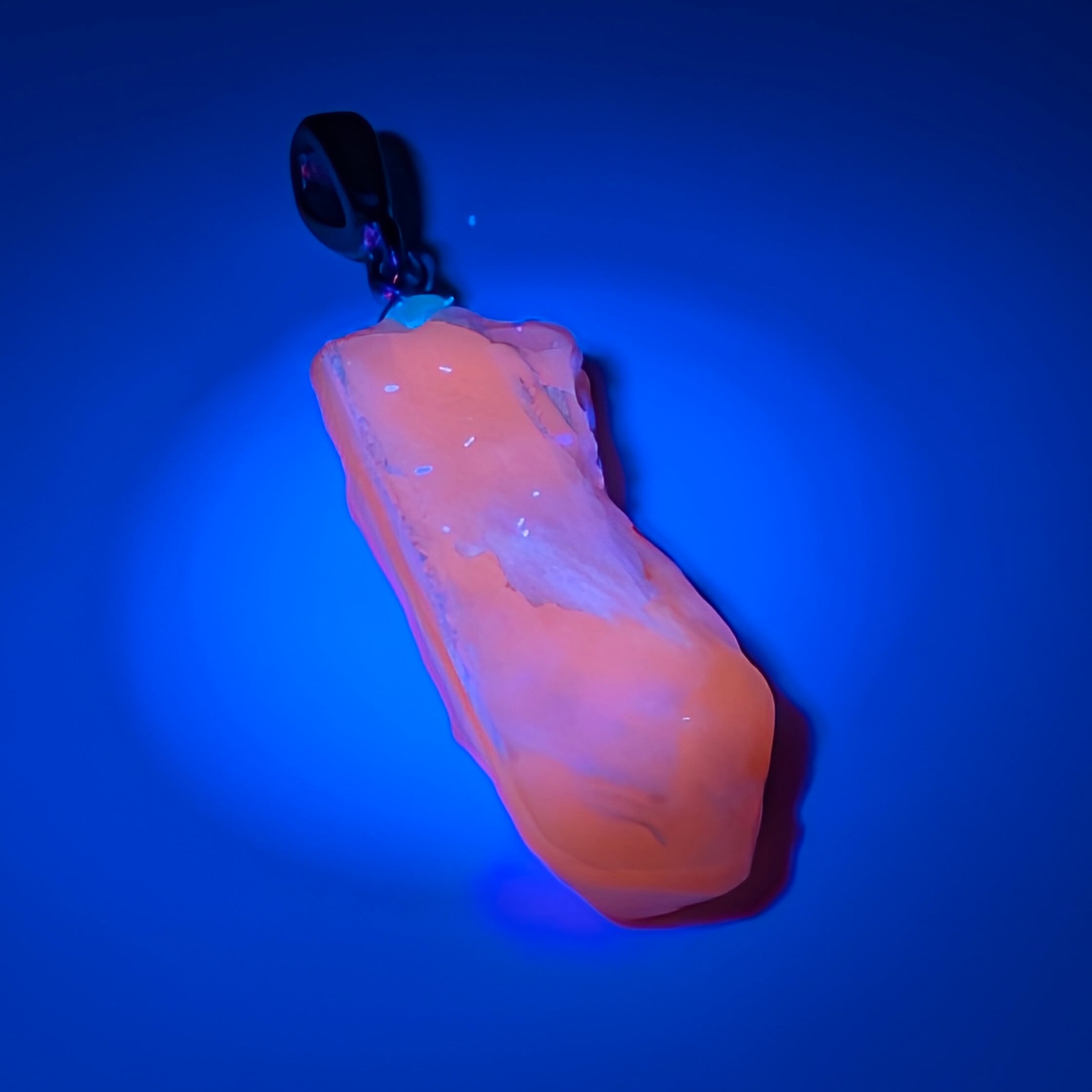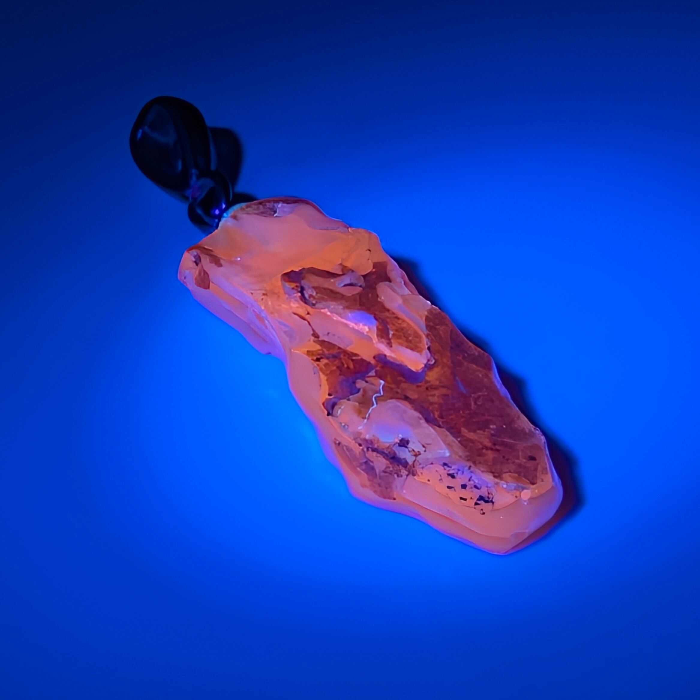 【伝説の白蛇が守護する奇跡の光】北海道蛍光オパール原石ペンダント〜超希少ネオン石