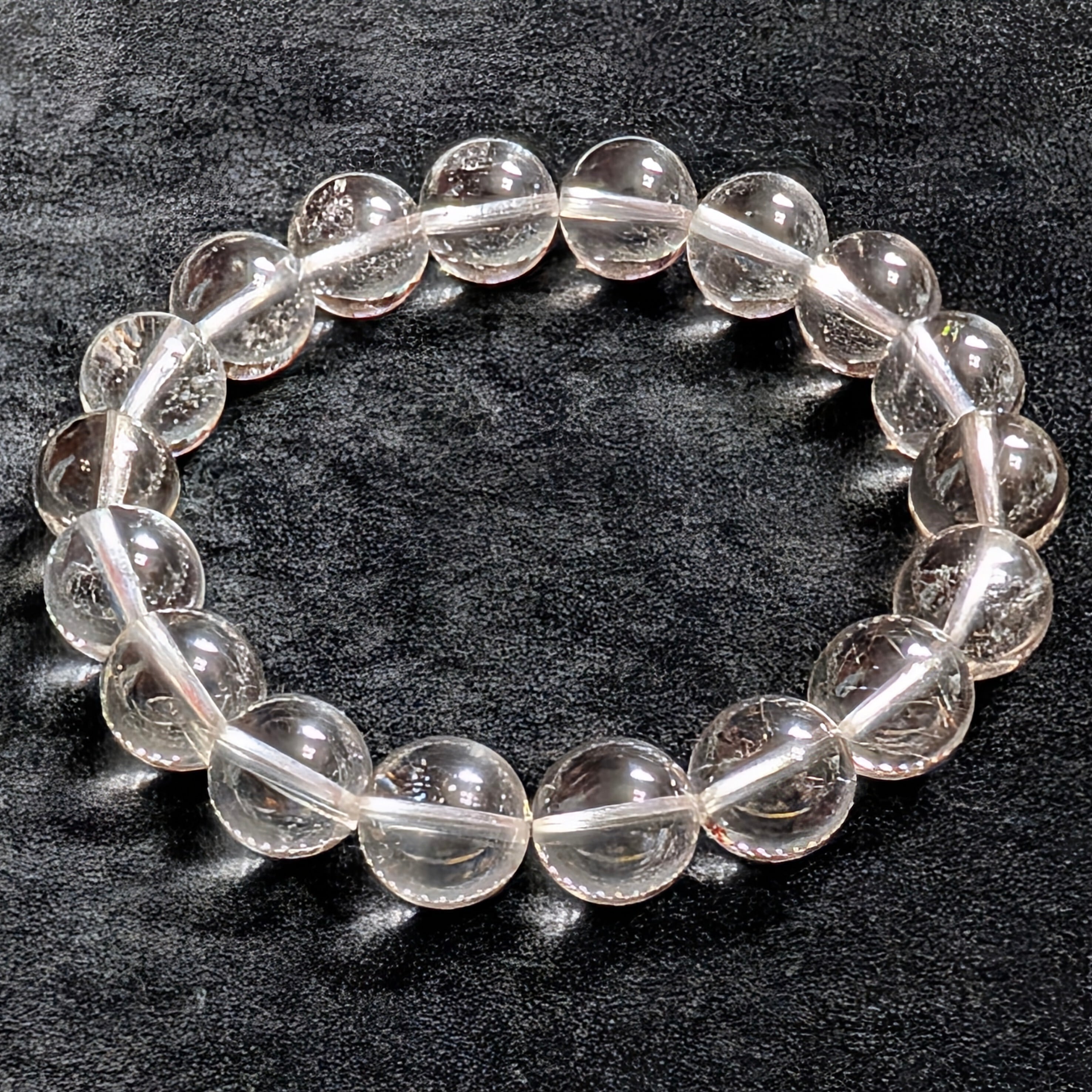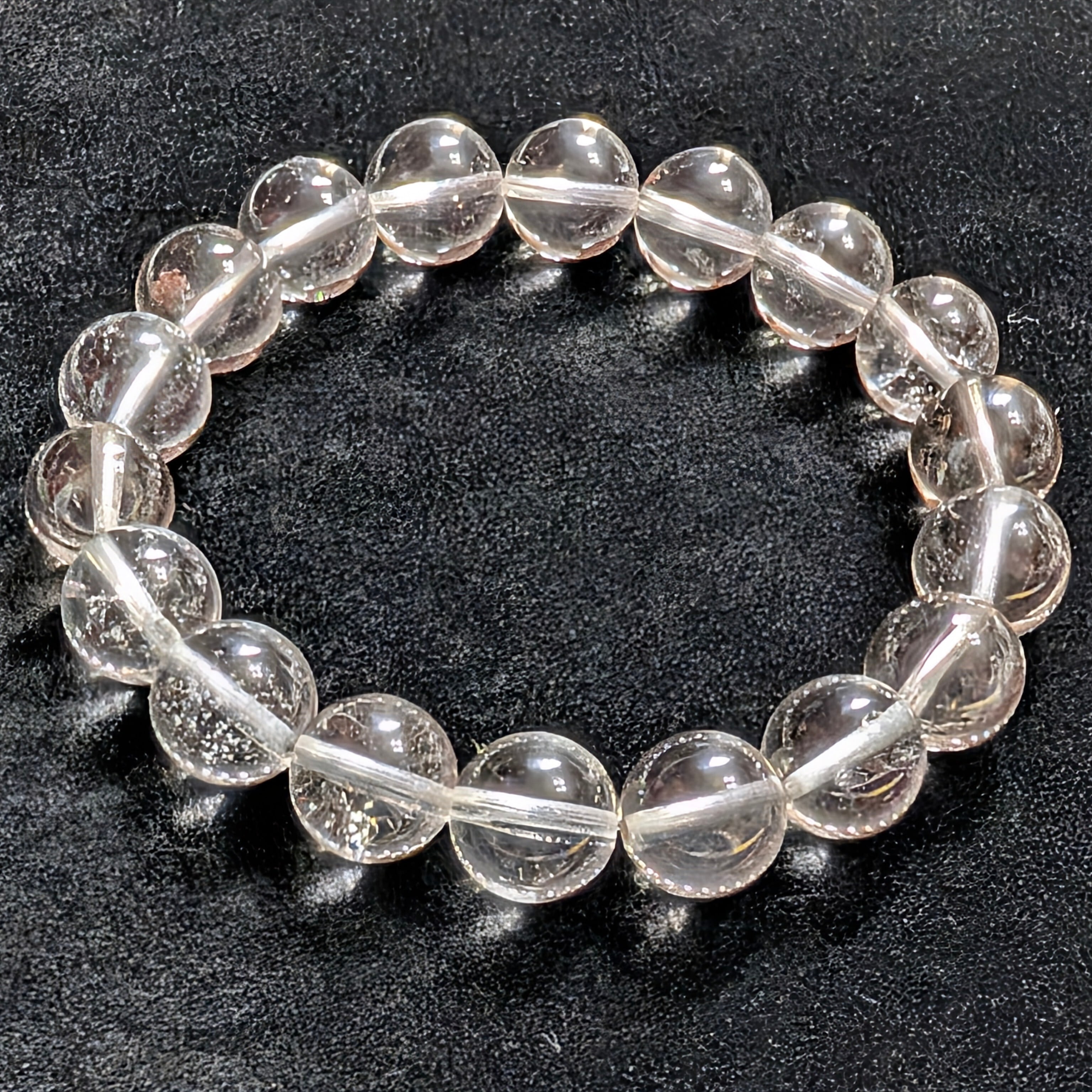 水晶の透明度は非常に高く、中には稀にガーデン状の内包物を含む珠もあり、一粒ごとに異なる神秘的な景色を楽しめるのが最大の魅力です。過度な加工をせず、自然の質感を大切に仕上げているため、石本来の力強い風合いを感じていただけます。自然が生み出した完璧な幾何学形状をお楽しみください。