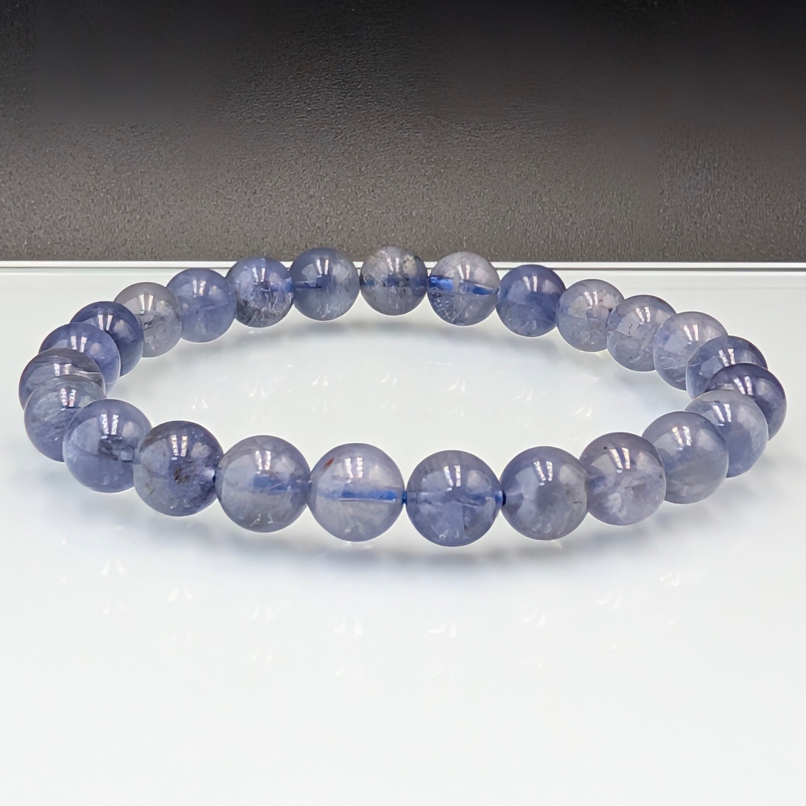 数ある天然石の中でも、その独特な色彩変化で人々を魅了し続ける「アイオライト」のブレスレットです。スリランカ産の高品質な原石を使用しており、抜群の透明感と発色を誇る一本に仕上がりました。手元を彩る、まるで夜空を閉じ込めたような深いブルーをお楽しみください