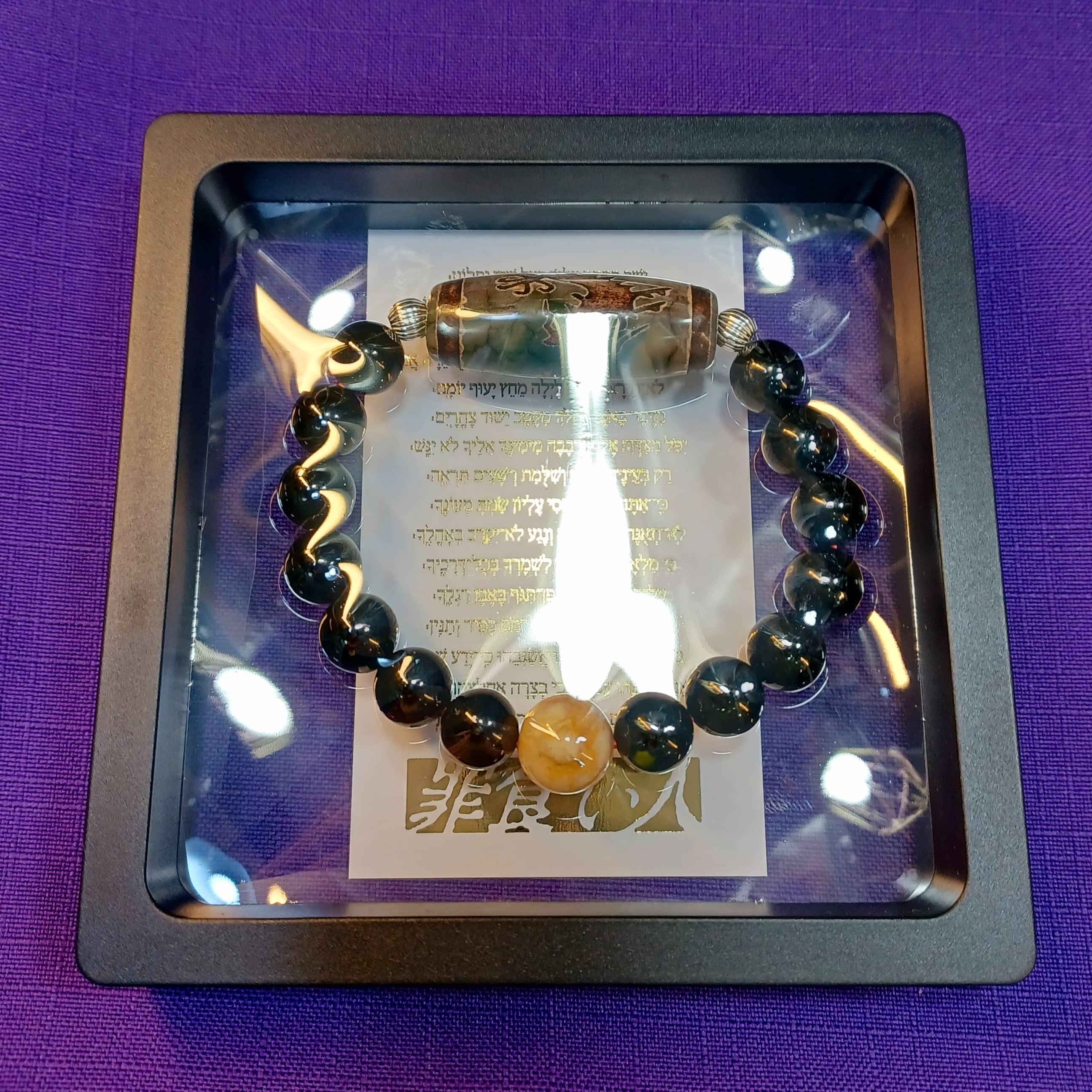 龍の鱗の紋様を持った龍紋天珠は最も希少性が高い天珠の一つ。 通常瑪瑙(めのう)の生産量の1割りにも満たない非常に貴重で良質な瑪瑙でつくられた天珠。 龍紋天珠の龍紋はひび割れ模様ですが、決してひび割れではなくその表面は非常になめらかです。 高級天珠。