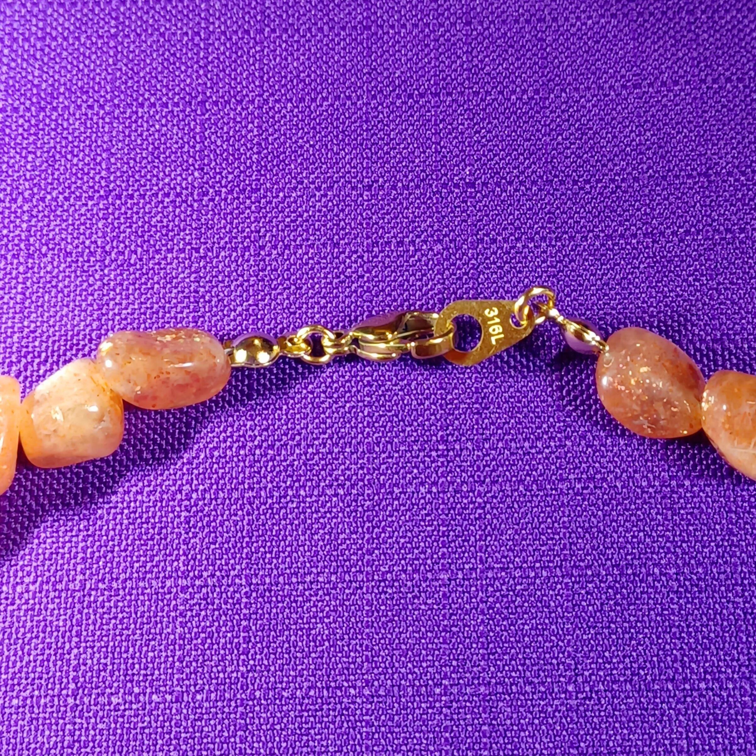 サンストーンは、ムーンストーンやラブラドライトと同じフェルスパー(長石)グループに属しており、太陽のような輝きを放つことからこの名前が付けられました。