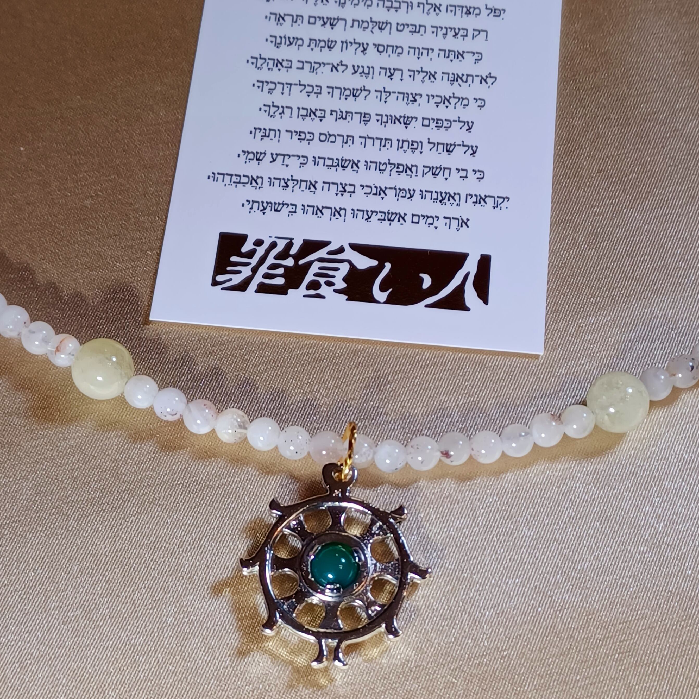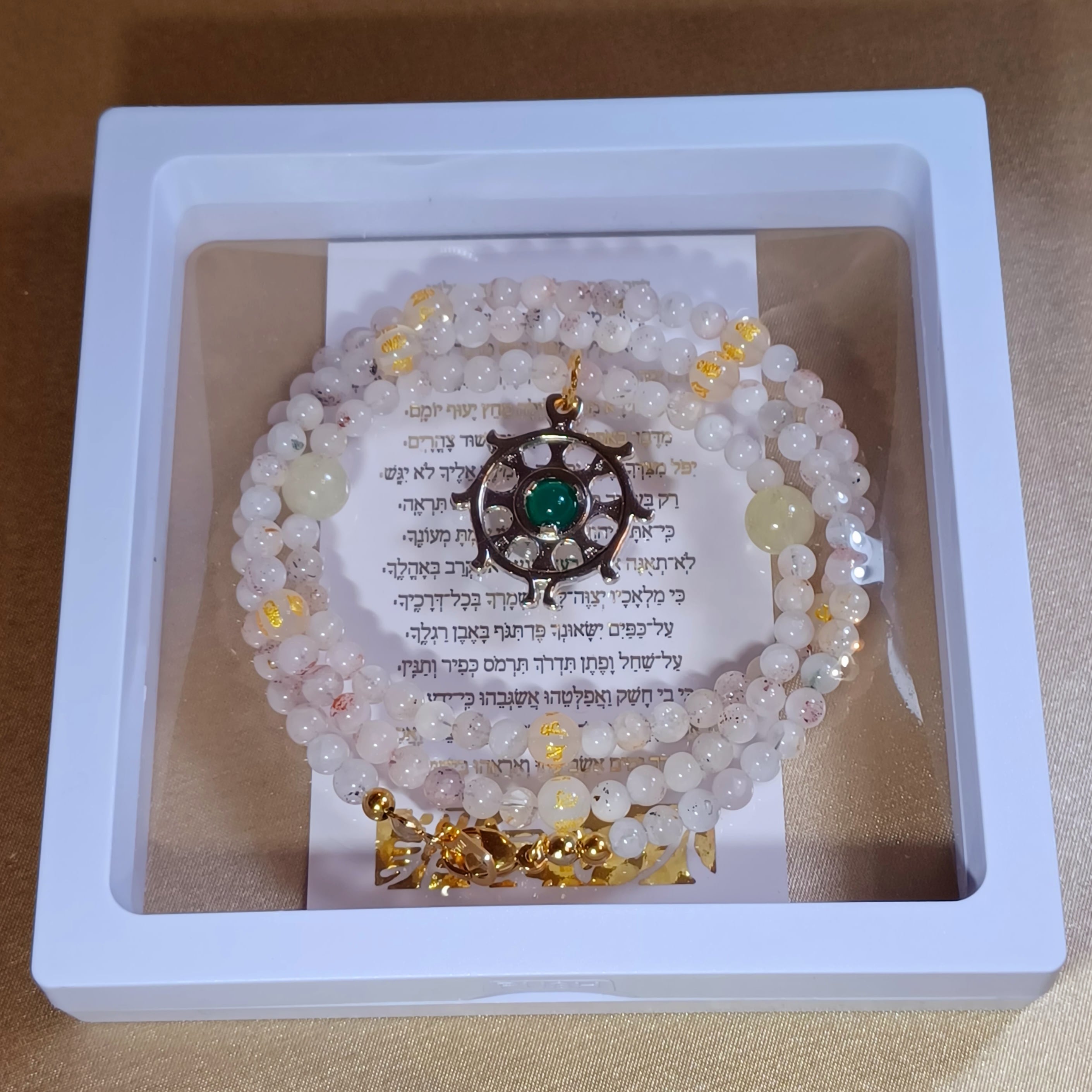 ■〔ホワイトカルセドニー6mm金彫梵字〕【六字真言・六字大明王陀羅尼】