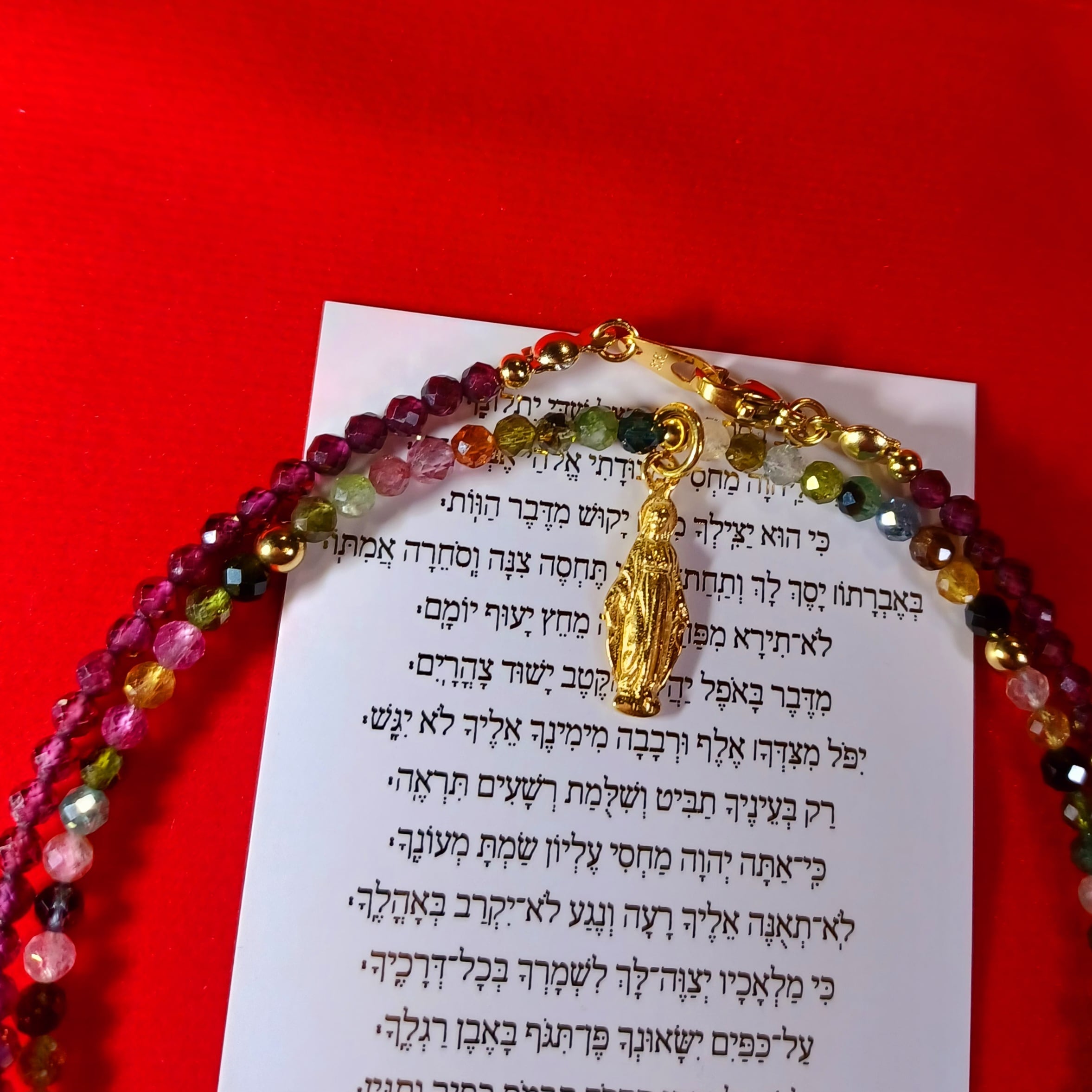 トルマリン、ロードライトガーネット、ペリドット、そして銀製の聖マリアのモチーフは、特に金運や繁栄に関連するポジティブなエネルギーを引き寄せると言われています。