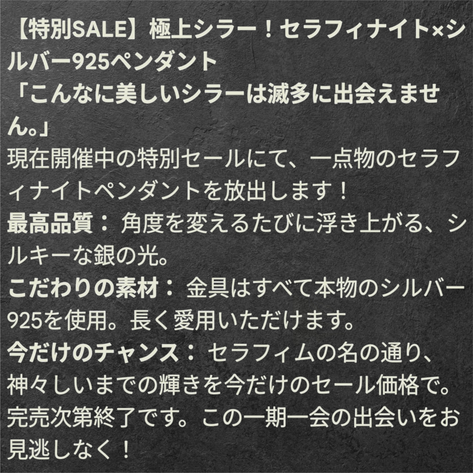 #セラフィナイト #天然石 #パワーストーン #シルバー925 #熾天使 #セラフィム #天使の羽 #ヒーリングストーン #天然石ペンダント #天然石SALE #一点物 #スピリチュアルジュエリー #silver925 #癒やし #自分へのご褒美